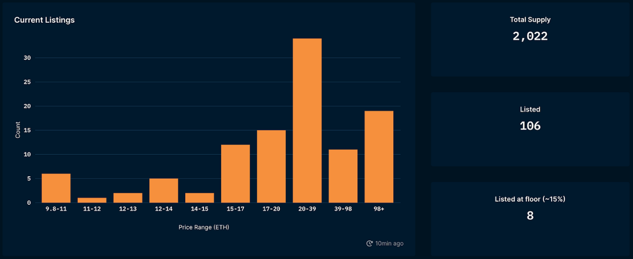 Examining the trading and holding pattern helps us to understand whether DigiDaigaku has a sustainable market demand. In this analysis, we will look at wash trading patterns, NFT listing, wallet age distribution and current holding cost.