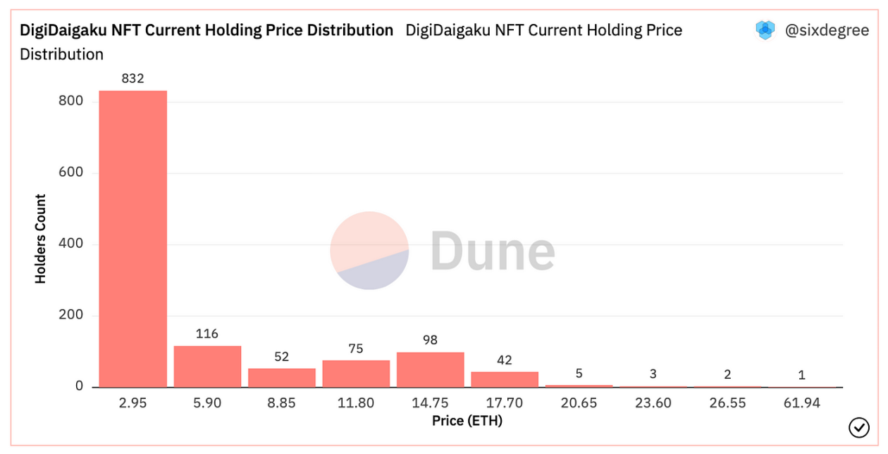 DigiDaigaku NFT current holding price distribution (As of Sep 3)