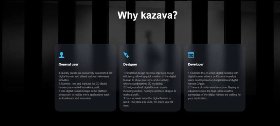 对于普通用户来说,Kazava 帮助他们快速创建属于自己的 3D 数字人,并支持他们将 3D 数字人进行转让、出租、交易,从而获得经济收益。