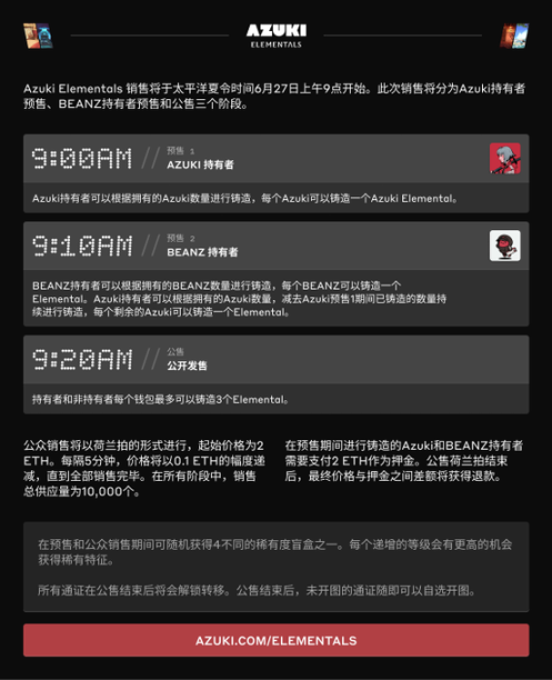 6 月 26 日,Azuki 公布了预售的详细细节