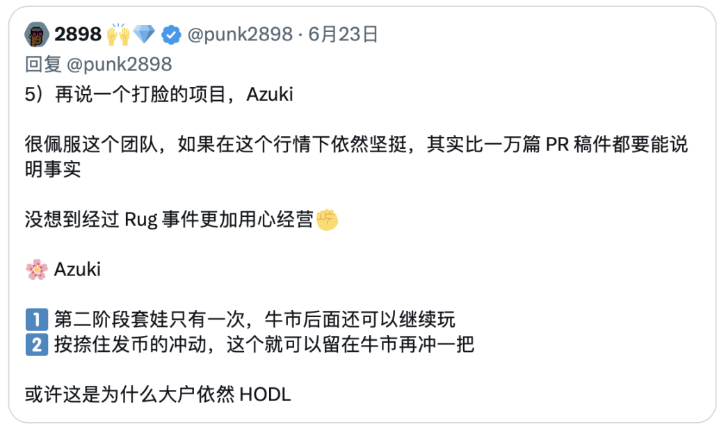 所以 Azuki 不会这么快放弃这个品牌(除非他们赚 2w 个 ETH Rug 了😂)