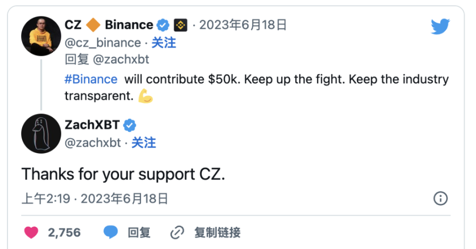 币安创办人赵长鹏在 6/18 也表示,币安会向 Zach 提供五万美元诉讼费,维系产业透明: