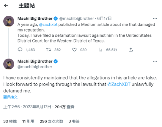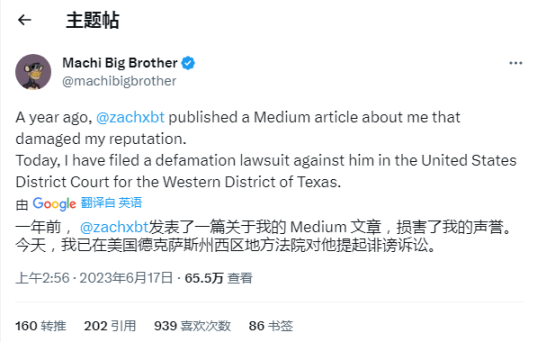 推特名人链上侦探 ZachXBT,在去年曾发文细数麻吉大哥黄立成数十个失败项目、22,000 枚 ETH 盗窃疑云等事迹,虽然黄立成在过去一年于推特上,曾试图以类似贿赂的方式诱使 ZachXBT 删文但未果,麻吉大哥黄立成选择在 ZachXBT 发文满周年对其提出毁谤诉讼。