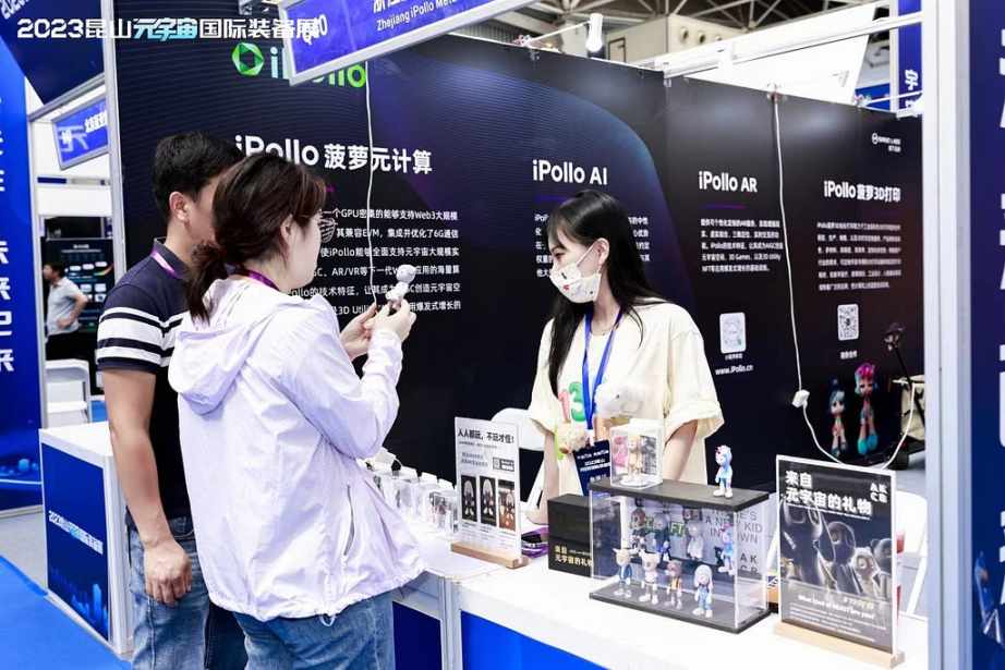 iPollo 展位上的 3D 打印潮玩手办吸引了不少观众驻足交流。iPollo 致力于为元宇宙,Web3 行业提供底层 3D 渲染算力服务,推动 AIGC 工具层的场景应用,为各行业 IP 数字化,场景多元化提供技术服务,同时将数字化 IP 和场景通过 3D 打印技术在现实世界展现。
