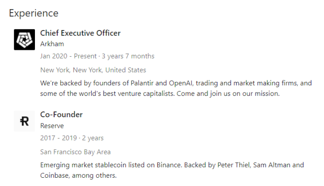 扒皮不止于 Arkham 本身,其创始人也 Miguel Morel 也难逃一劫,并将其与 CIA 联系到了一起。