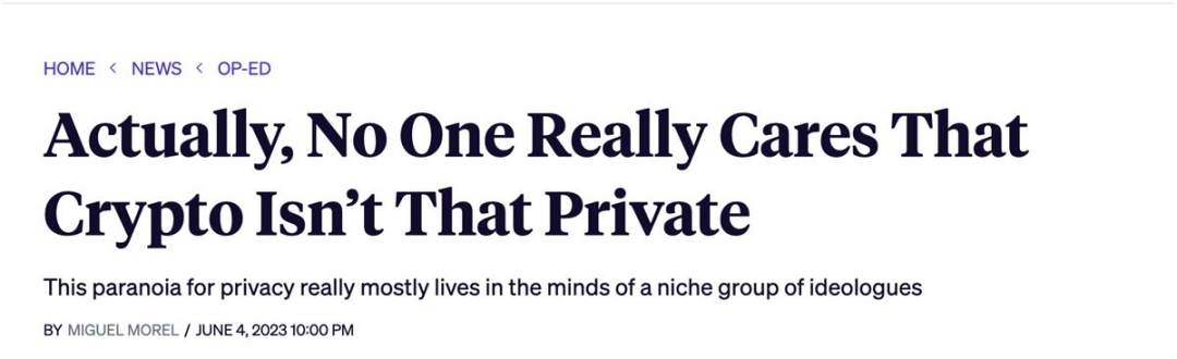 2023 年 6 月,Miguel Morel 曾发表文章,标题为《事实上,没有人真正关心加密货币是否具有隐私》,可窥见其内心想法。