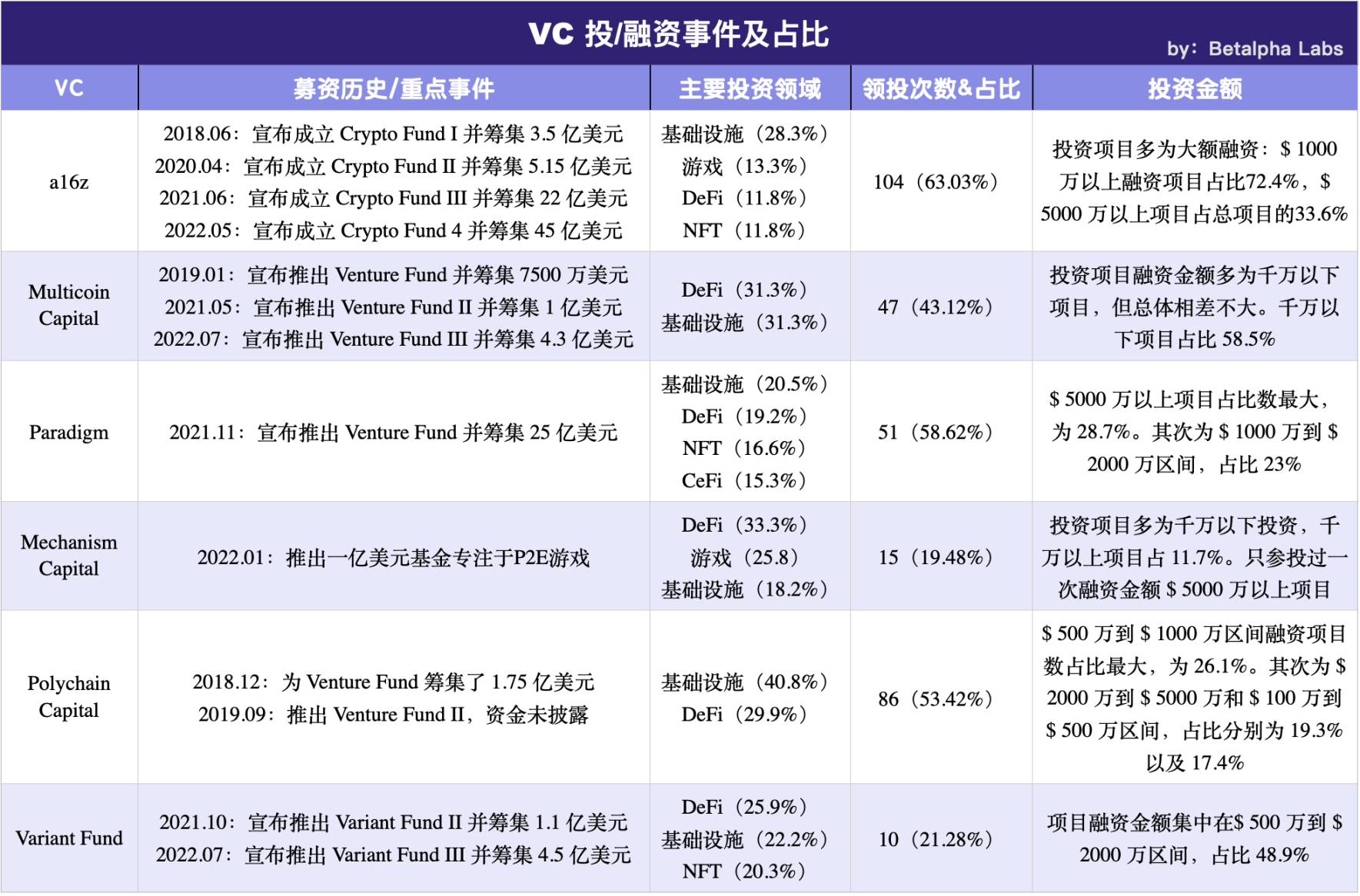 重点分析六家顶级加密 VC 公司,包括 a16z、Multicoin Capital、Paradigm、Mechanism Capital、Polychain 和 Variant Fund。