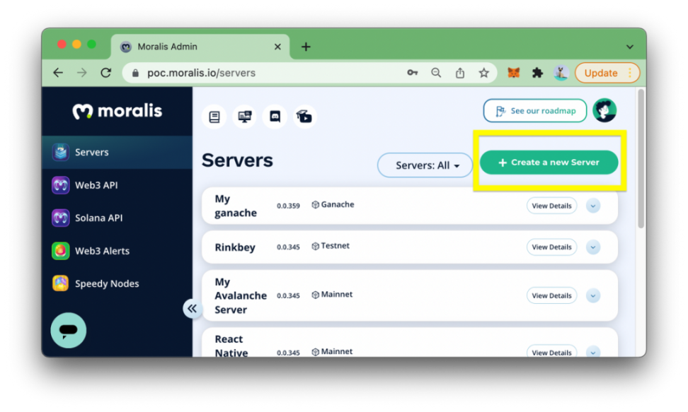 2、创建 Moralis 服务器
