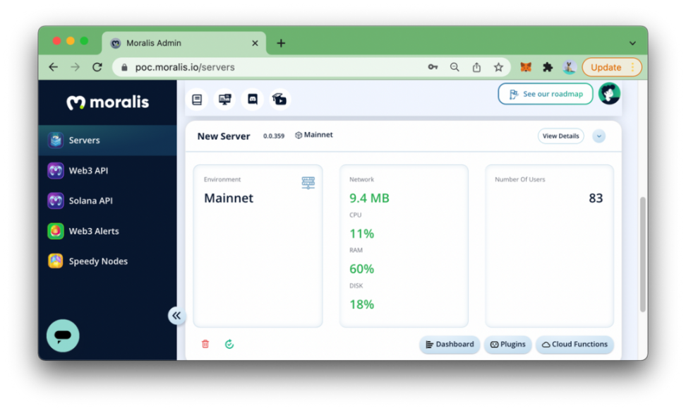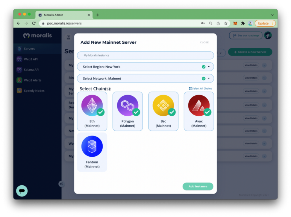 至此,开发者将在仪表板中看到其创建的服务器,然后开发者可以继续操作,并创建一个支持与服务器对话且能够登录用户、获取用户数据(令牌、NFT、历史交易)等等的 Web 应用程序。这个程序是默认支持跨链的。