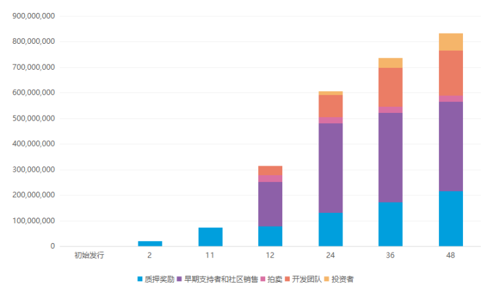 代币释放规则中,DapperLabs部分(250,000,000枚)、抵押品储备部分(125,000,000枚)、以及基金会储备部分(160,185,841枚),合计约5.35亿枚代币没有明确释放时间。其中,DapperLabs部分为长期持有,如有销售的,则从销售之日起有一年锁定期。抵押品储备部分不直接进入流通供应。基金会储备部分用于质押、委托、筹款或者出租给社区组织。