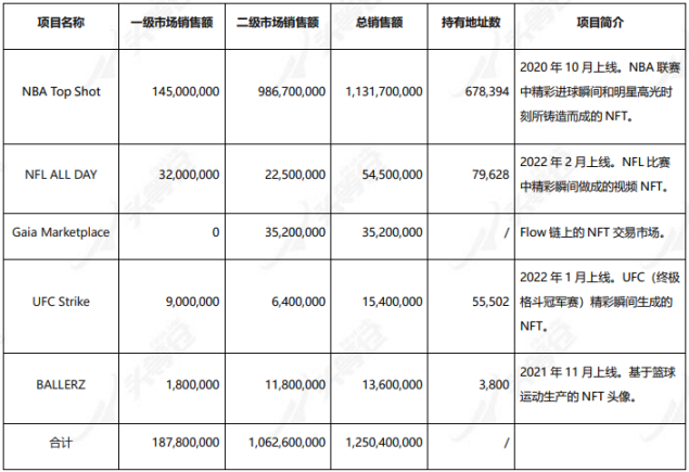 Flow的主打项目NBATop Shot销售总金额超过11亿美元,占据Flow链上交易的绝大多数份额,产品高度集中。