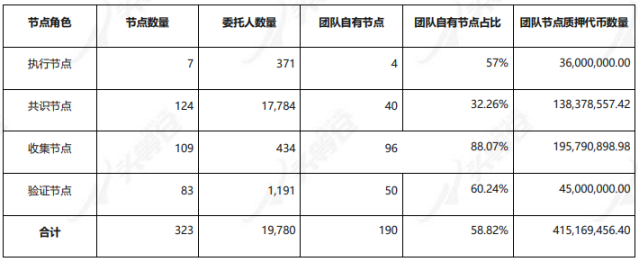 截至2022年4月29日,Flow共有323个节点,共有19,780个委托人,共质押了约73,286万个FLOW。各类节点的信息如下表所示: