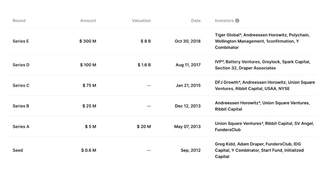 值得一提的是,Coinbase 在 2018 年 10 月 30 日以 80 亿美元的估值完成了 3 亿美元的 E 轮融资,并在 2021 年 4 月 14 日在纳斯达克上市,股票代码为「COIN」,目前市值 $20.65B。