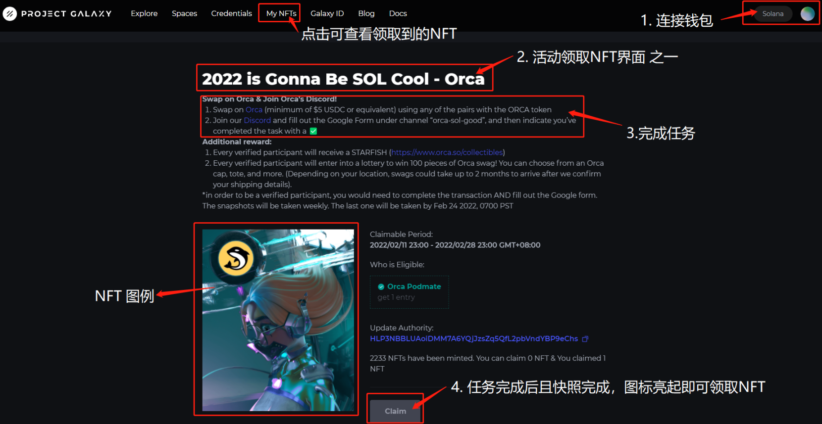- 点击进入 Galaxy 活动介绍 页面,随机点击任务进入NFT领取页面