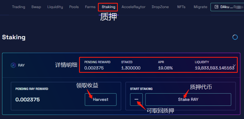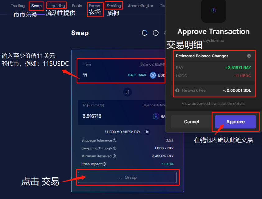 📌任务描述:在 Raydium平台上进行 交易、质押、挖矿。