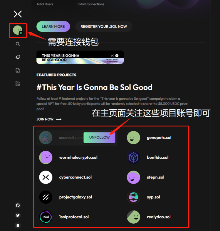 📌任务描述:在 CyberConnect 上关注至少 10 位参与者。