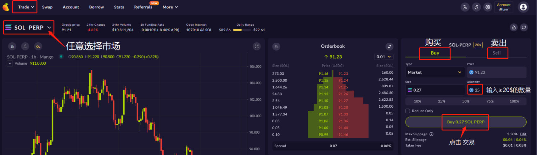 📌任务描述:创建一个Mango账号,存入至少 $7,并达到至少 20美元的交易量。