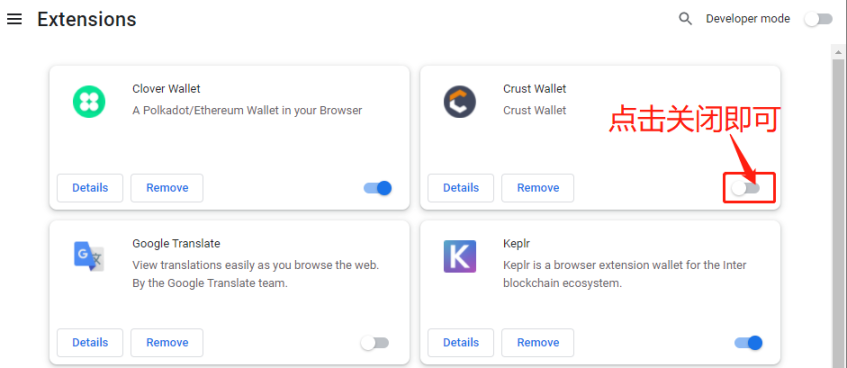 📢D-Tiger提示:Clover 钱包于Crust 钱包有冲突,建议关闭 Crust 钱包后再使用 Clover钱包哦!