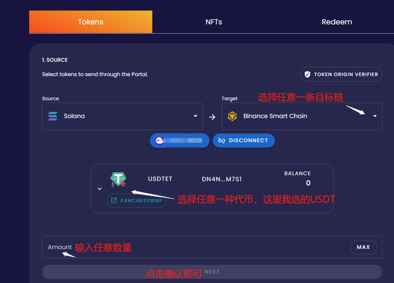 详情:首先,使用Portal从Solana上发送任意种类代币到支持的链。