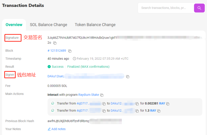 📢D-Tiger提示:交互签名记录可以通过 Solscan网页 来寻找: