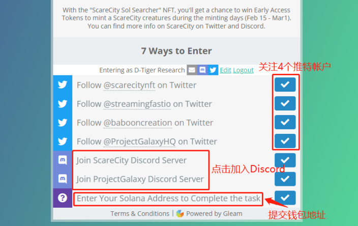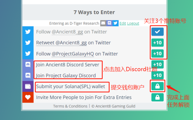 2. 加入discord 社群 且 关注 Twitter账户 即可