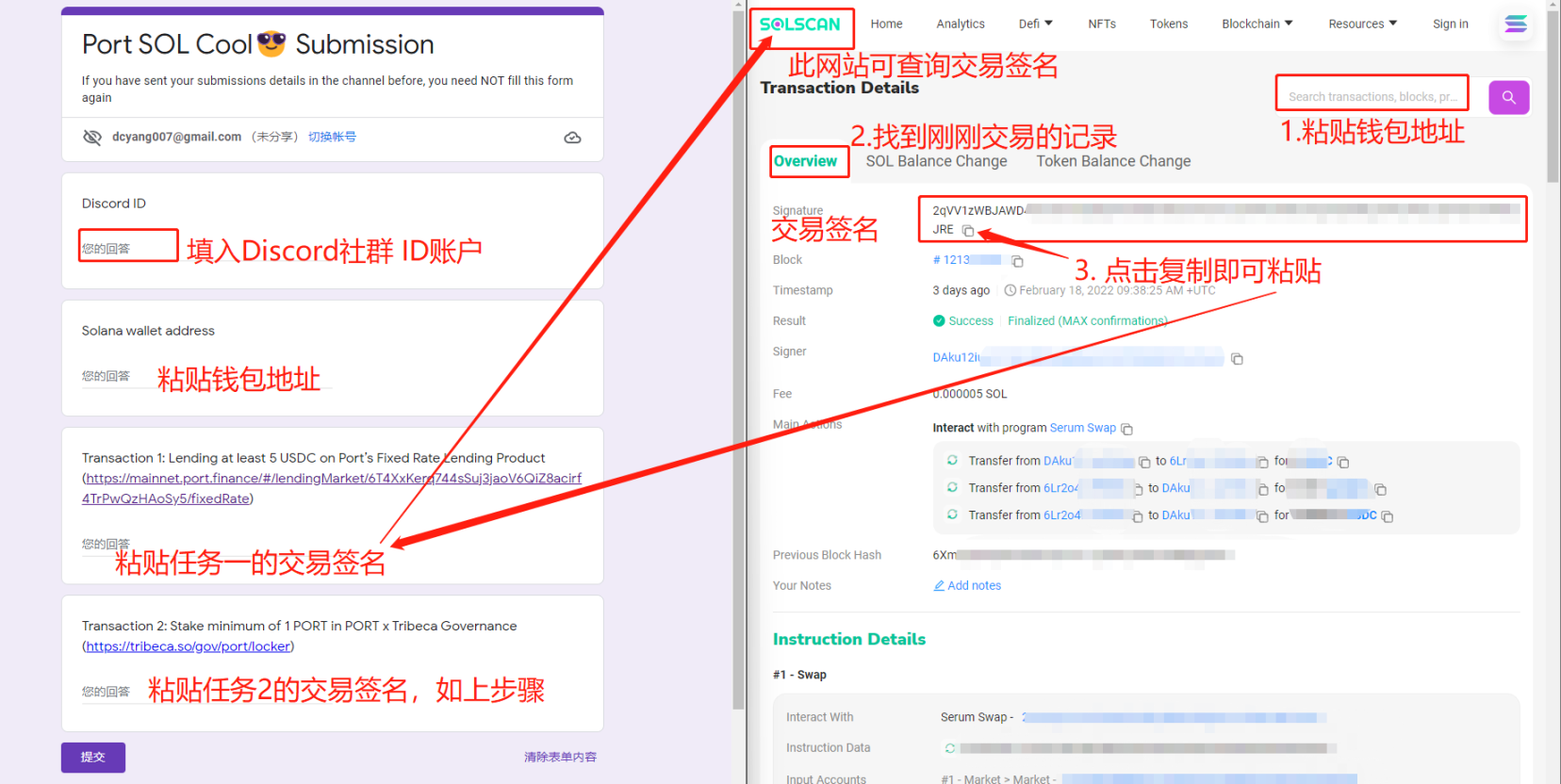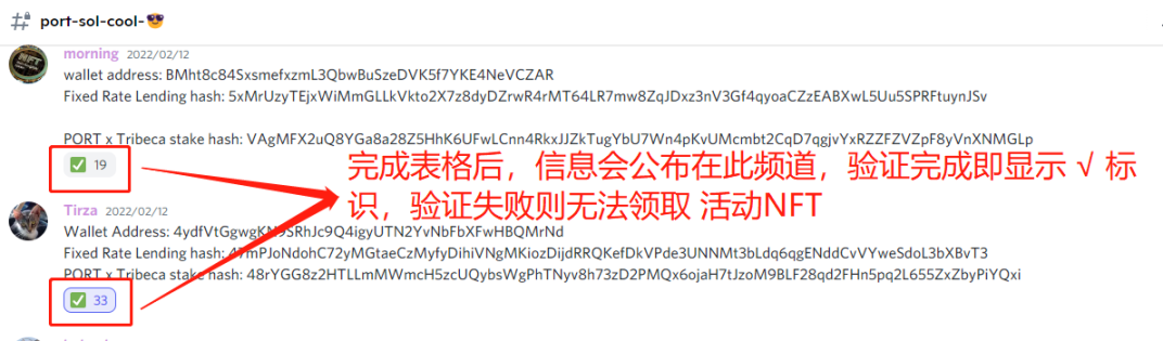 - 加入Port Finance的Discord并在 “#port-sol-cool” 频道中分享交易ID 及钱包地址。