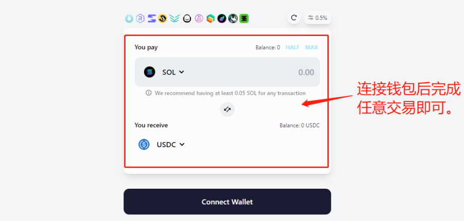 - 与任何其他参与的项目在Solana上执行一笔交易(例如,在 Juptier 上完成一笔交易)