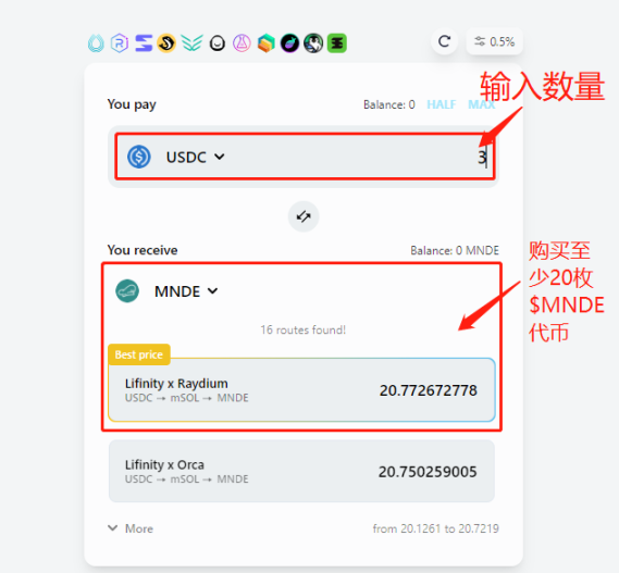 1. 需要在 Juptier 上购买至少 20枚$MNDE 代币。