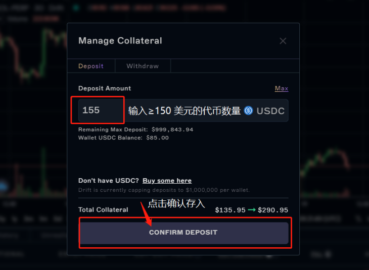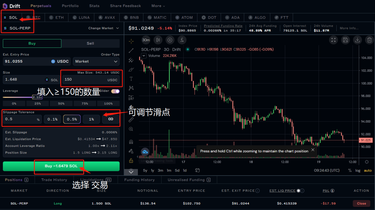 📌任务描述:在 Drift 上交易至少 $150 USDC