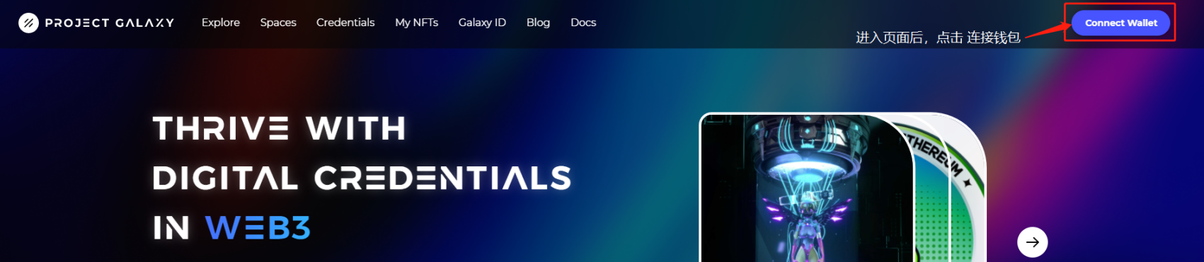 1. 请确保已经拥有/创建 幻影钱包插件(Phantom wallet)并进入 Galaxy 网页 。