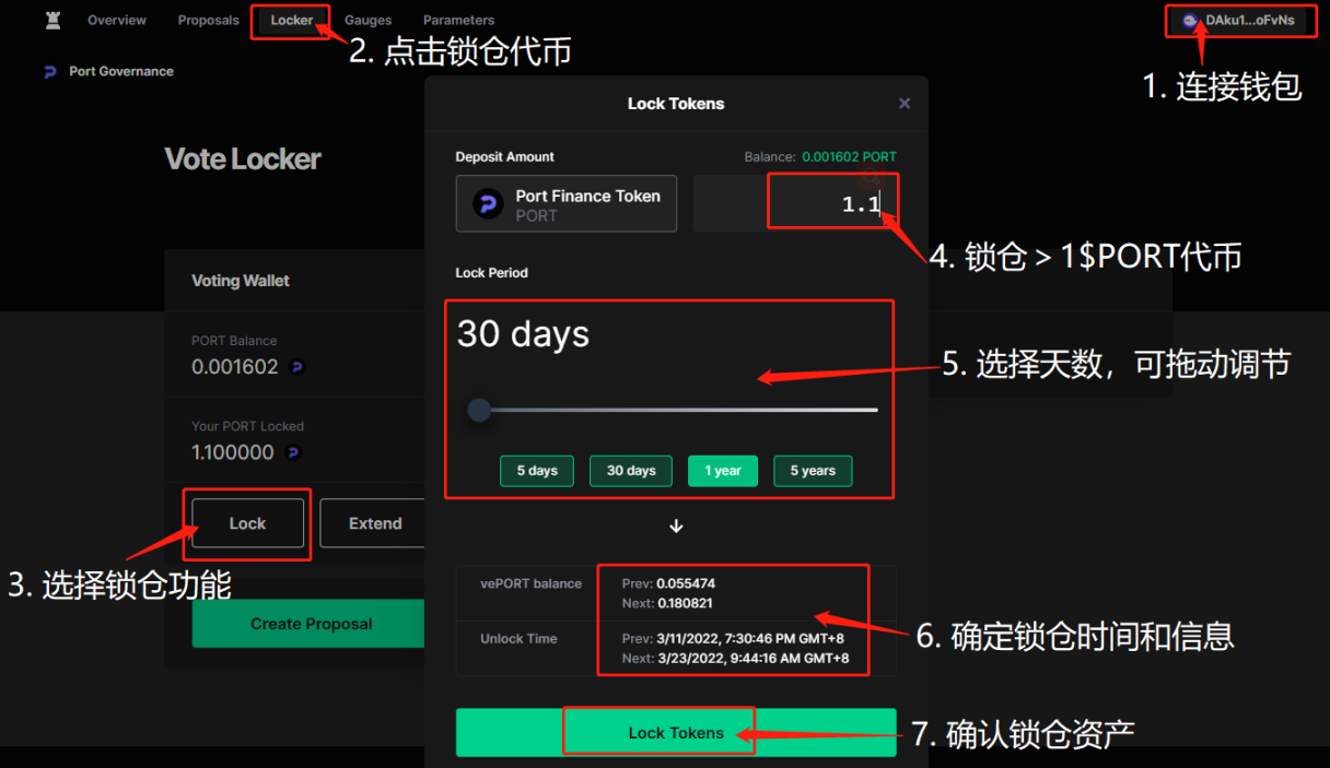 2. 按照任务2的要求,复制粘贴进入 PORT x Tribeca Governance ,并锁仓>1 枚$PORT 代币即可。