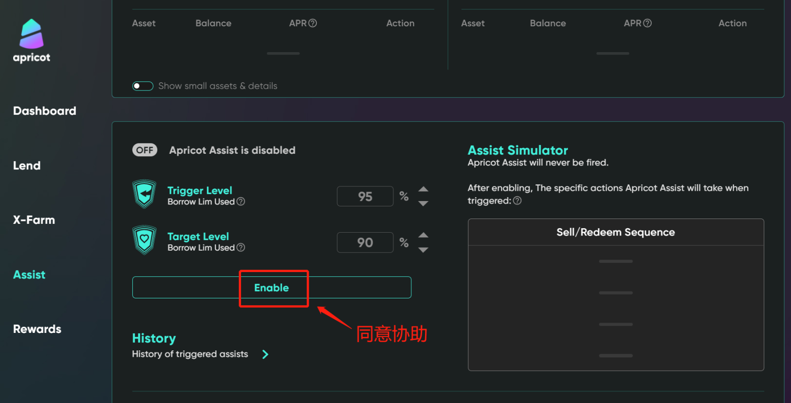 📌任务描述:在项目的存储功能中存$50或以上,并且在Apricot平台上启用Apricot Assist