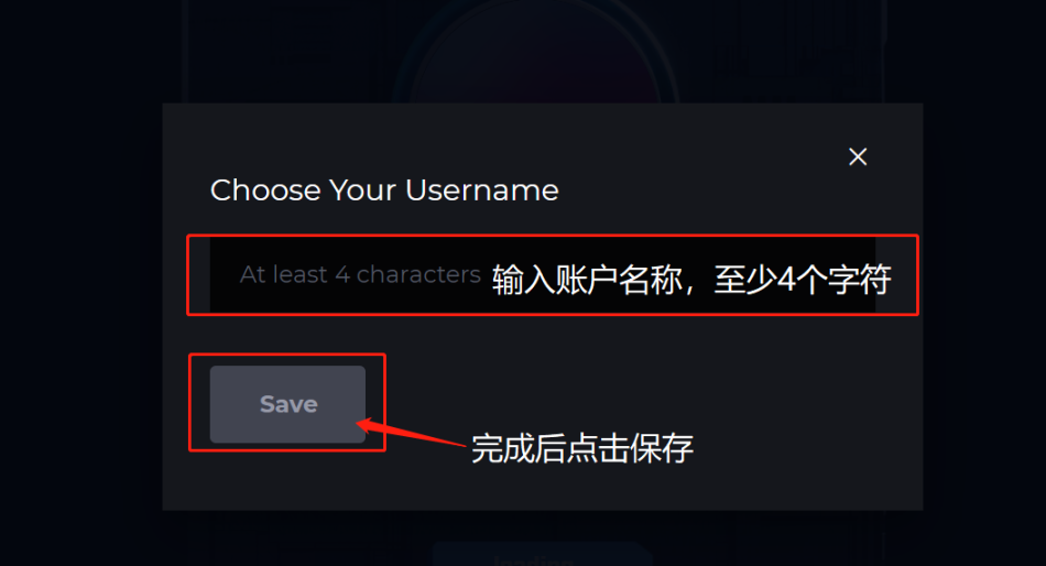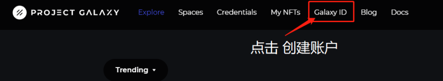 4. 连接钱包后,点击页面上方的 “Galaxy ID”,跳出一个输入账户名称的设置框,填写完成后点击 “save” 保存即可。