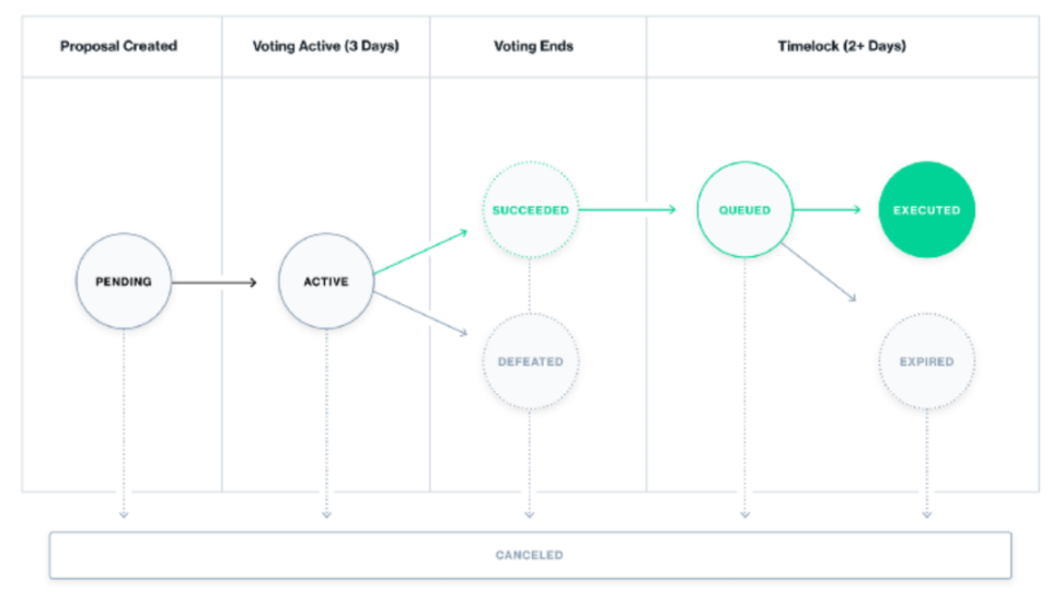 Compound 表示,所有协议的用户和基于 Compound 开发的应用都将持续不断、自动地获得治理权。COMP 治理代币可用来进行 Compound 的社区治理,持有者可以对 Compound 协议提出变更提案,或对提案进行投票。