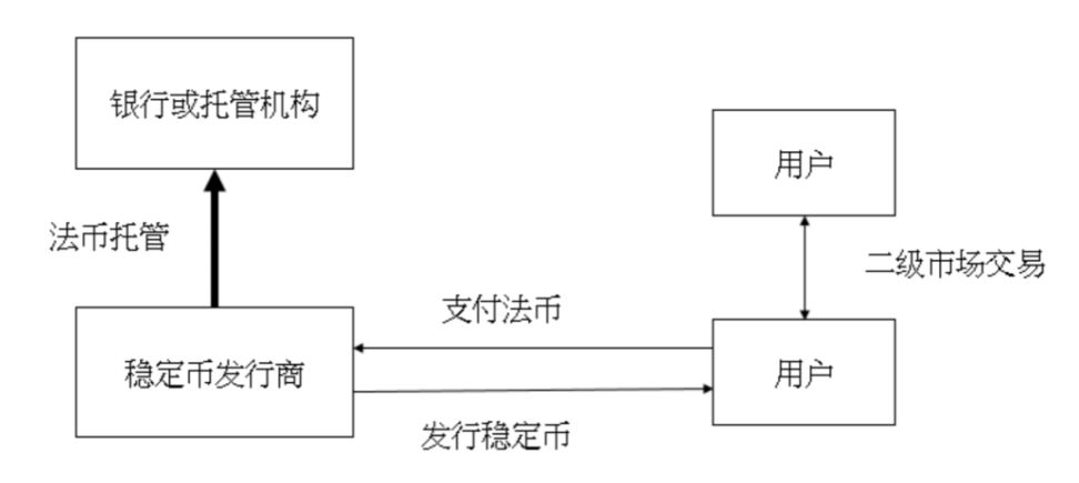 - 双向兑换规则:中心化受信任机构确保 Token 与抵押法币之间的双向 1:1 兑换。用户给中心化受信任机构 1 单位抵押法币,中心化受信任机构就给用户发行 1 单位稳定币。用户向中心化受信任机构退回 1 单位稳定币,中心化受信任机构就向用户返还 1 单位抵押法币。