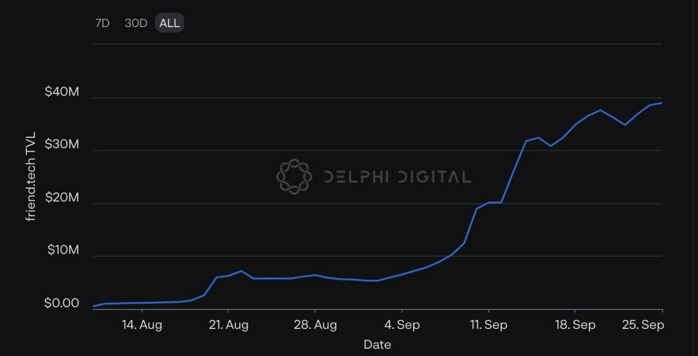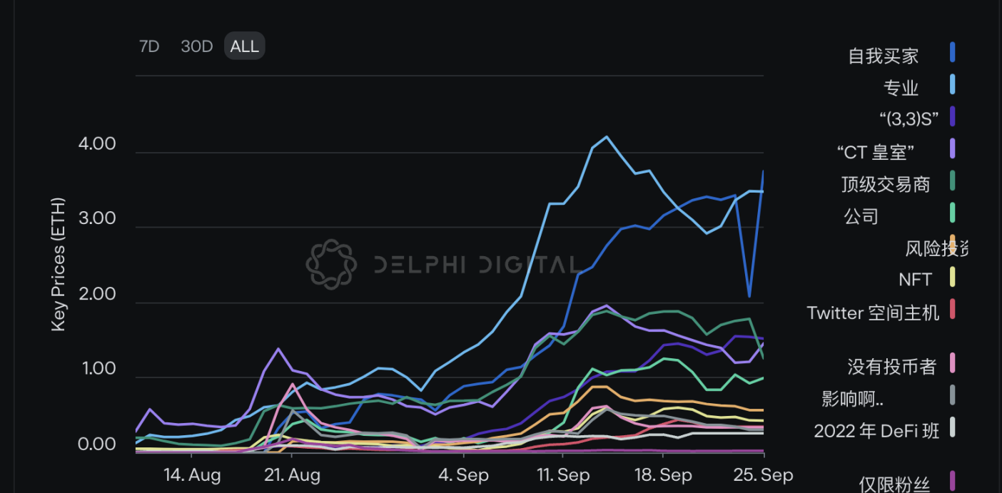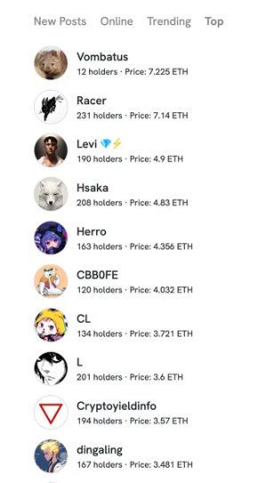 过去几周,Friend.Tech(FT)推动了 SocialFi。许多知名的加密推特人士目前在那里都有积极参与,导致了重大的炒作。Hsaka 和 CL 的 Key 分别为 5 和 4 个 ETH。目前,自己买自己的 Vombatus 以略高于 7 个 ETH 的 Key 价格领先。