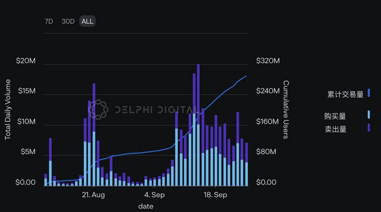 自九月初以来,FT 的交易量已经大幅增长。在过去的一周中,它们稳定在每天约 1000 万美元的范围内。值得注意的是卖出与买入量的变化,上周我们看到了明显增加的卖出压力,这预示着获利了结和用户可能退出平台。然而,自上周五实施削弱自我购买的积分以来,买家重新获得了信心,正如买入与卖出量所示的增加的买入量。