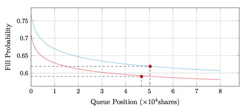 稍微补充几句,所谓最佳买价和最佳卖价之间等距的中价,很容易受到噪音的影响,当垃圾订单被提交又被取消时就会发生这种情况。此外,如果两个案例具有相同的订单簿形态,那么最新发布的最佳买价,意味着会有一个低于最新发布的最佳卖价的合理价格。还有另一个问题,即发布记录的历史是否重要,如果重要,那我们到底应该从时钟时间还是交易量时间的角度来观察它?基于订单流的特征,做市商的最优限价单的位置到底设在哪里?如果你挨着订单簿顶部提交紧密的报价,那么你会频繁成交,但每次都赚得很少。如果你提交深度报价,你的成交不会那么频繁,但每次你都会赚更多。这实际上是一个具有唯一全局最大值的凸面优化问题。