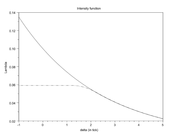 某一些公式要求这种强度函数可以连续两次微分,这种易处理性是一个好且合理的预设,但最终也是没有必要的。此外,还有各种各样的公式来计算「距离订单簿顶部的深度或距离」。你通常既可以使用「合理的中间价」,也可以使用从各个角度出发的所谓最佳买价和最佳卖价。这两种方法存在不同的权衡取舍,我们在这里就不讨论了。