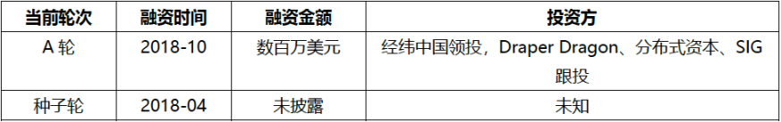 成立于 2018 年 3 月,目前 A 轮,4 位投资人,总融资额约 2000 万人民币。