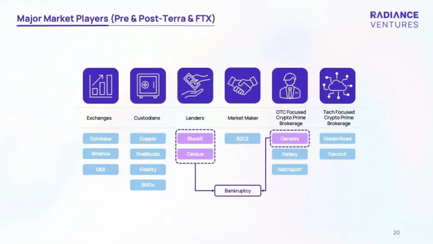 我们的旅程仍在继续,我们将穿越加密货币大宗经纪领域,找出塑造其发展的主要参与者。从 Celsius 到 Galaxy,从 Genesis 到 BlockFi,我们仔细审视他们在生态系统中的战略、产品和定位。这种探索,有助于我们破译支撑这个不断发展的行业的错综复杂的关系网络。