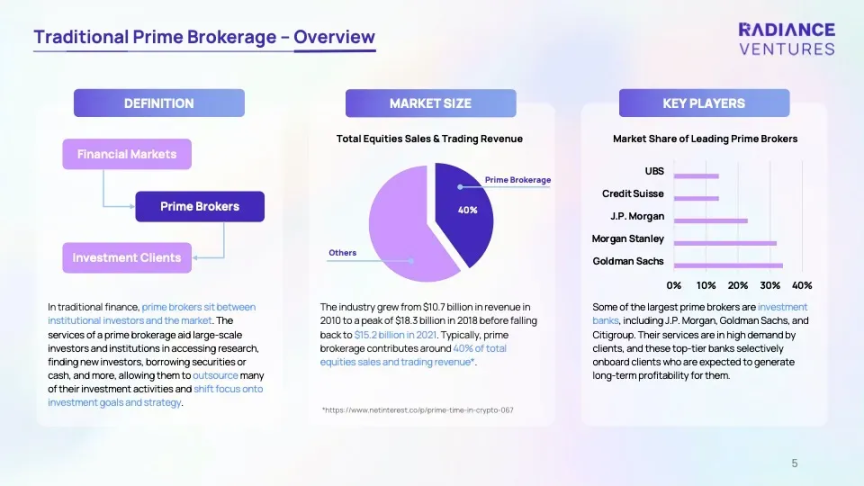 我们首先深入研究大宗经纪业务的本质,将传统金融 (TradFi) 市场与其加密市场并列。通过比较和区别,我们揭开了连接这些世界的复杂线索,为理解加密货币大宗经纪业务的独特属性奠定了基础。