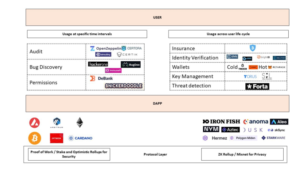 在基础设施堆栈中,鉴于隐私和安全供应商在区块链的存在中对支持者(加密货币原生用户、Z世代)和反对者(监管者、保守派/传统)都很重要,他们看起来特别有趣。任何事物都具有两面性,因此对于加密货币运动的应用还是消除存在一定的争论。支持者主张用户数据的完全隐私以及需要保障他们的储蓄/财富的安全,(采用加密货币)就没有不必要的中间机构或中央机构;而反对者则认为新生技术的匿名性和脆弱性是促成非法活动的一个严重原因。