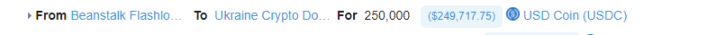 攻击者给乌克兰加密货币捐赠 250,000 枚 USDC,价值约 25万 美元。