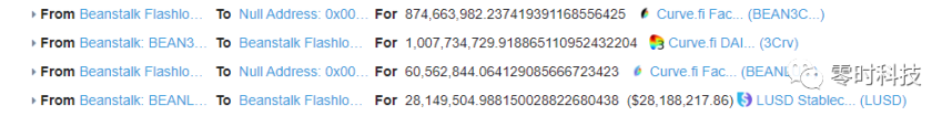 攻击者将获取的所有的 BEAN3CRV-f 兑换为 1,007,734,729 枚 3Crv,将所有的 BEANLUSD-f 兑换为 28,149,504 枚 LUSD。