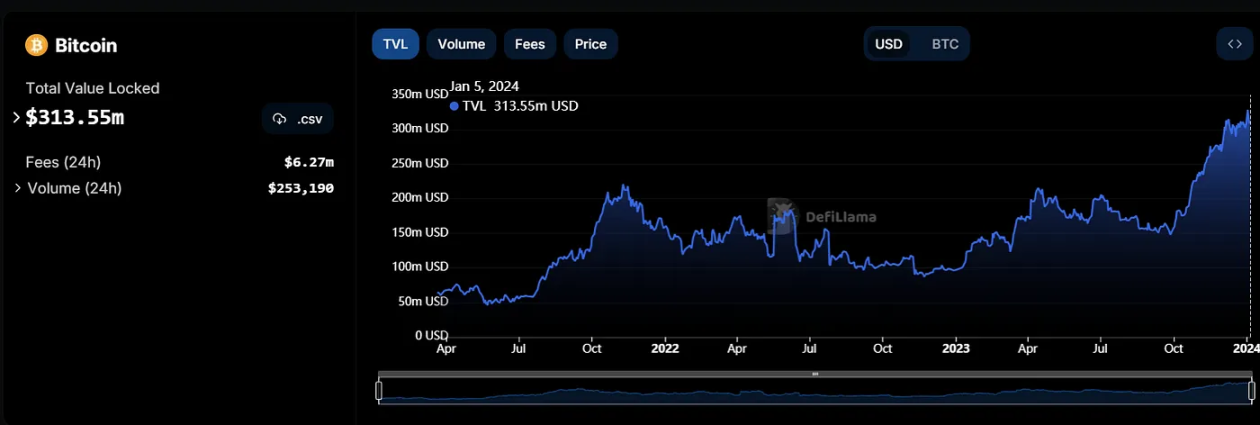 目前,Coinmarketcap 的数据估计BTC 的市值为 8680 亿美元,其中BTC DeFi TVL中只有 3.15 亿美元。这与以太坊相比相形见绌,以太坊的 DeFi 锁定总价值估计为280 亿美元。智能合约和成熟的 L2 架构的存在是造成 TVL 差异的一个主要因素。