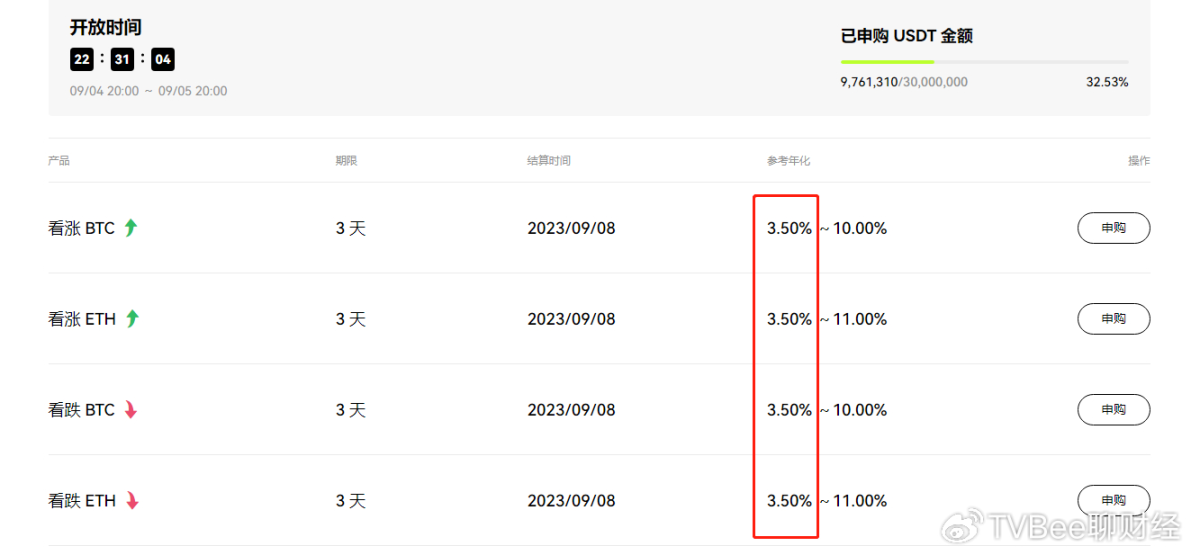 也就是说,无论买入看涨或看涨的欧易鲨鱼鳍,至少都可以获得 3.5% 的年化收益率。