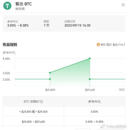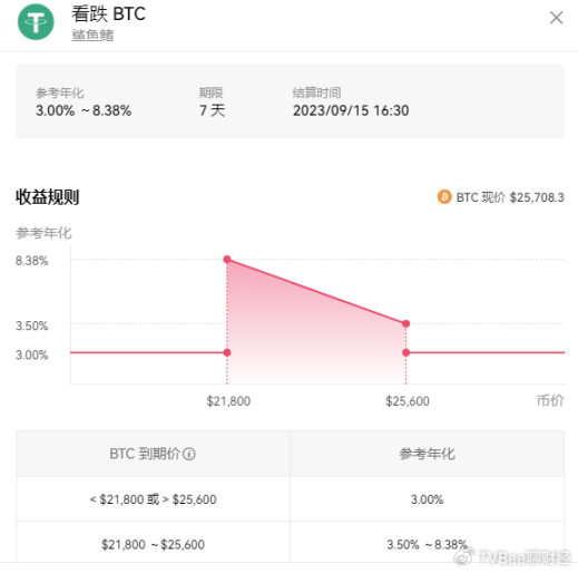 •到期时,假如\(25700<BTC 价格<\)25800,只能获得保底年化收益率 3%。