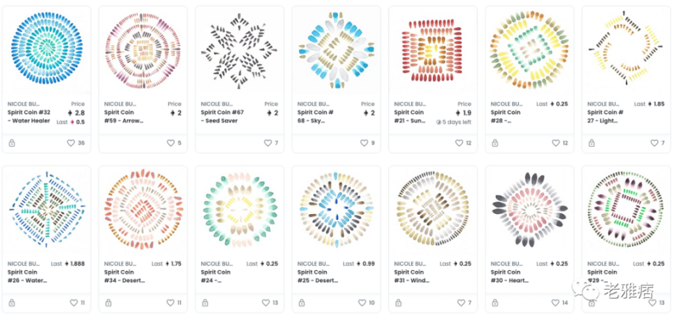 Nicole 于 2021 年初开始销售她的抽象画的 NFT。她的创世系列 Spirit Coins在 NFT 市场 OpenSea上以当前价格计算的交易量超过 83,000 美元。每个售价为 3,342 美元的底价或最低价格。
