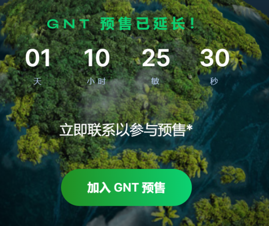 官网目前可参与GNT预售,门槛为2.5W美金起投,没有锁定期,后续还将会有公售。